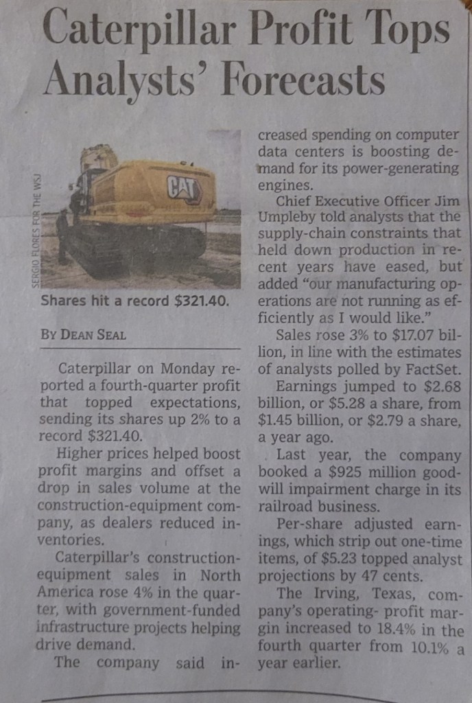 Caterpillar, renowned for its excavators and bulldozers, reported fourth-quarter profits that surpassed expectations, sending its shares soaring to record highs. Despite a drop in sales volume, the company’s strategic focus on pricing proved instrumental in navigating challenges and seizing opportunities in the market.
